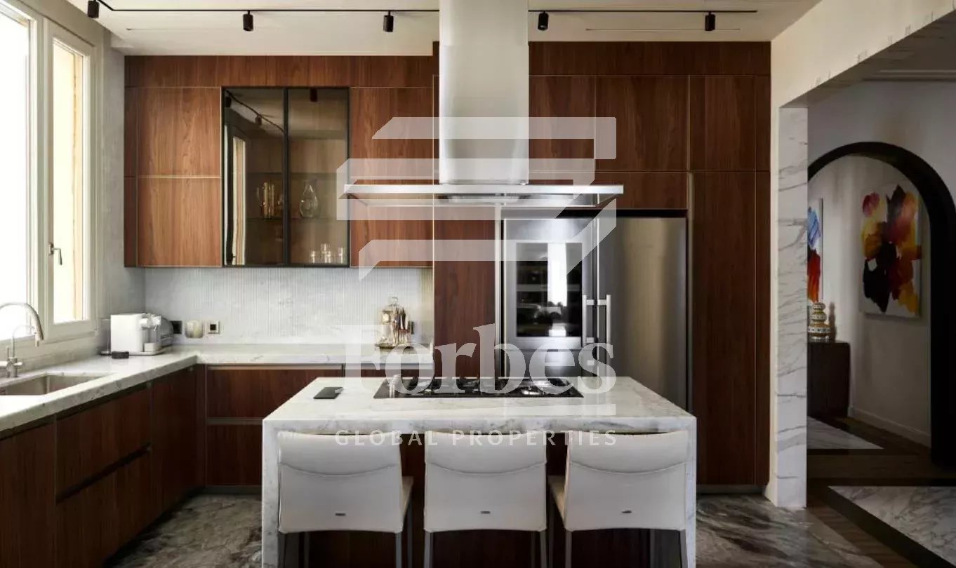 The apartment located on the first floor covers an area of about 185sqm plus a terrace of about 50sqm, perfect for pleasant moments in the open air. Access via entrance hall that divides the living area from the sleeping area in addition to direct access to the terrace. The living area has a large living/dining room separated from the eat-in kitchen and service bathroom. The sleeping area includes three double bedrooms with en-suite bathrooms, two of which overlook the private terrace.