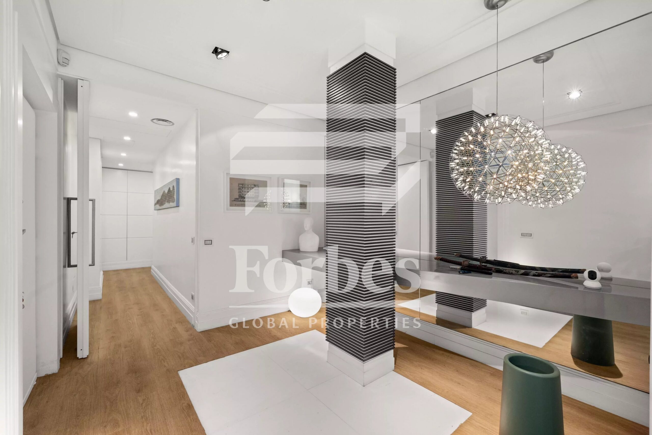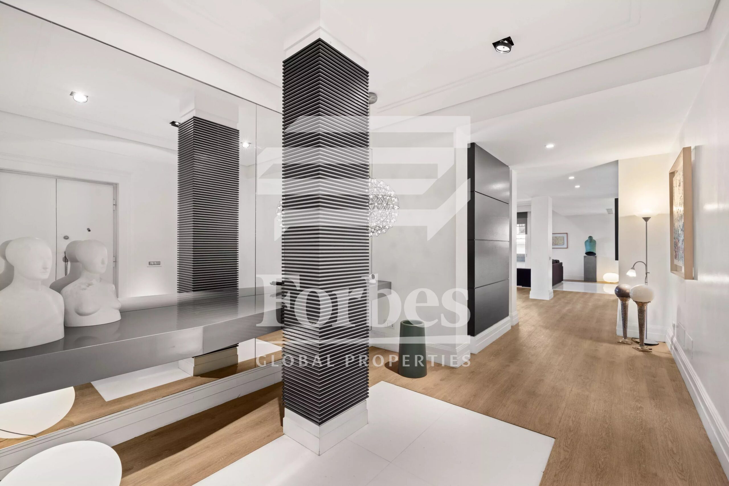 Το διαμέρισμα είναι ιδιαίτερα αντιπροσωπευτικό, ξεκινώντας από το χωλ εισόδου, συνεχίζοντας στο τριπλό σαλόνι από το οποίο υπάρχει άμεση πρόσβαση στην τραπεζαρία. Μακριά από το καθιστικό βρίσκονται τα υπνοδωμάτια, όλα με ντουλάπες και ιδιωτικό μπάνιο με ντους και μπανιέρα υδρομασάζ. Τα μεγάλα παράθυρα και η απόσταση από τα γύρω κτίρια καθιστούν αυτό το διαμέρισμα εξαιρετικά φωτεινό. Στις τέσσερις γωνίες, τέσσερα μπαλκόνια προσφέρουν μια μικρή και σπάνια εξωτερική διέξοδο σε μια γειτονιά που χαρακτηρίζεται από ιστορικά κτίρια χωρίς εξωτερικούς χώρους.