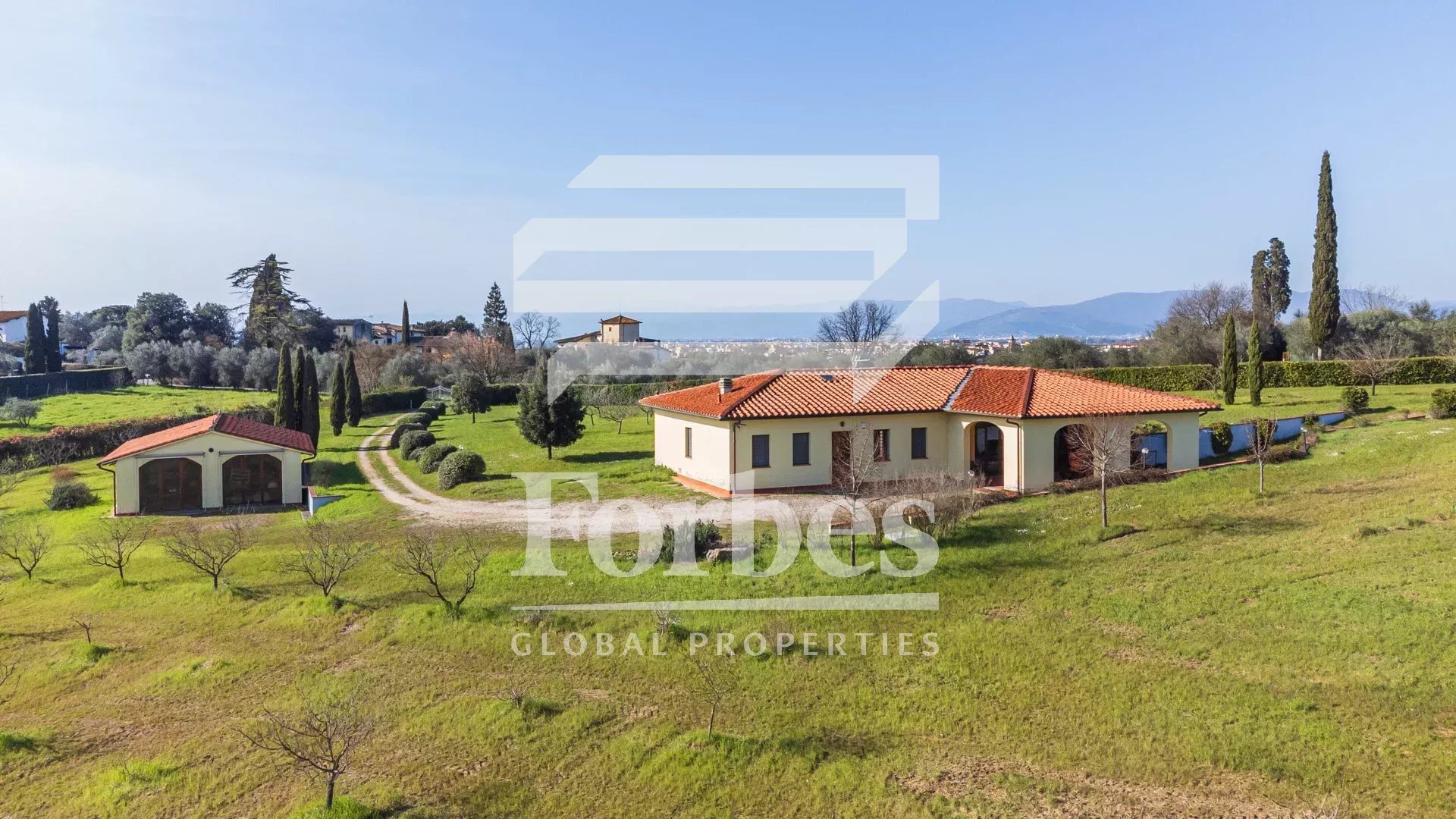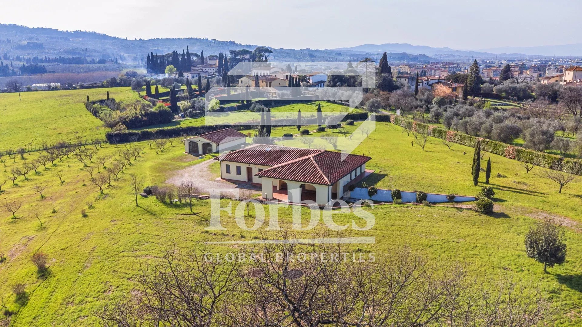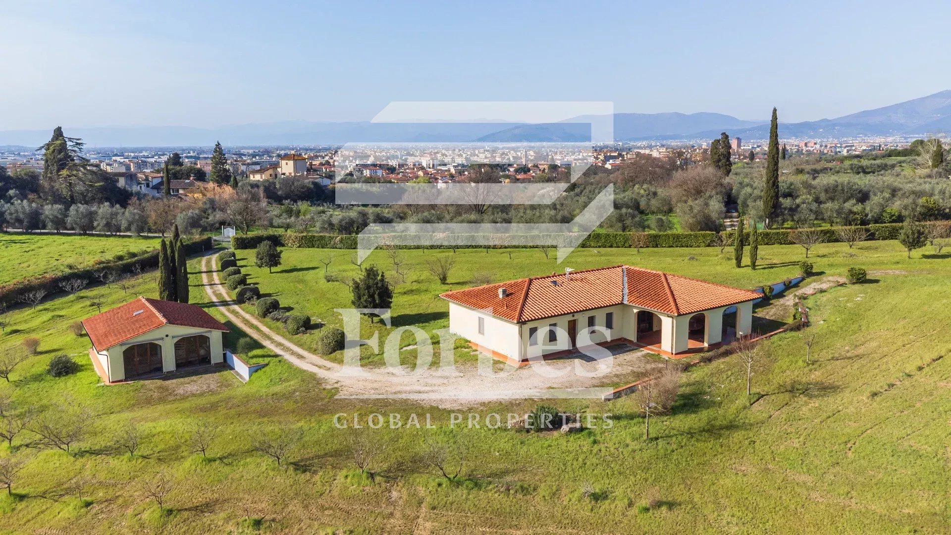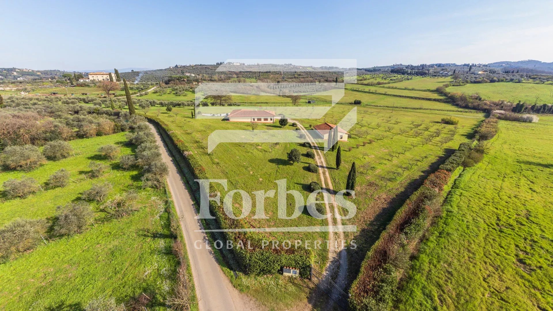 This prestigious property for sale on the outskirts of Florence is easily accessible via a quiet and scenic private road. The location is strategic: secluded enough, but well connected to the main services.