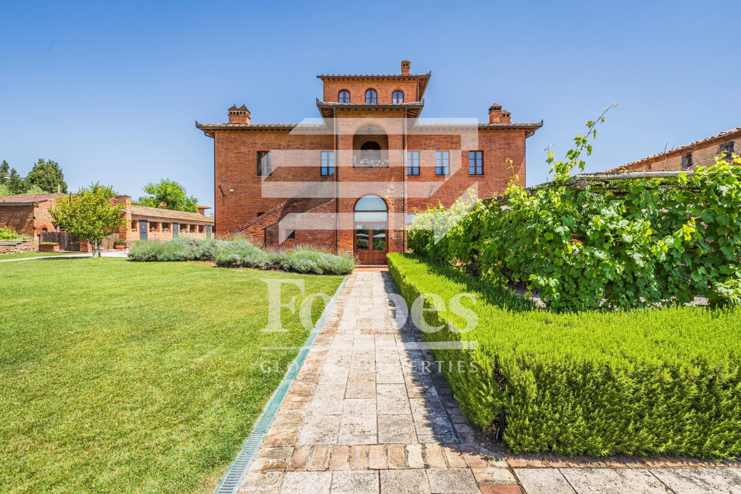 Questa prestigiosa proprietà si estende per circa 900 mq e comprende vari edifici, offrendo un mix unico di storia e lusso contemporaneo.