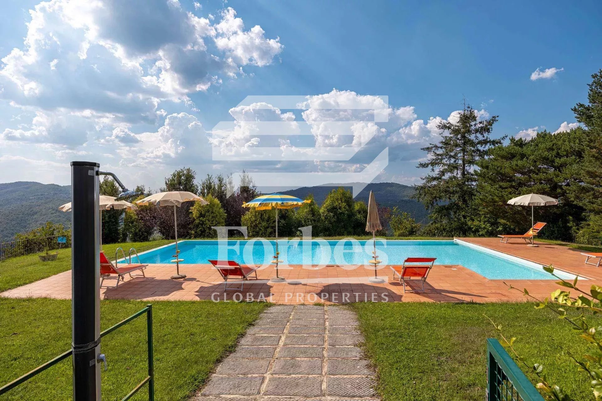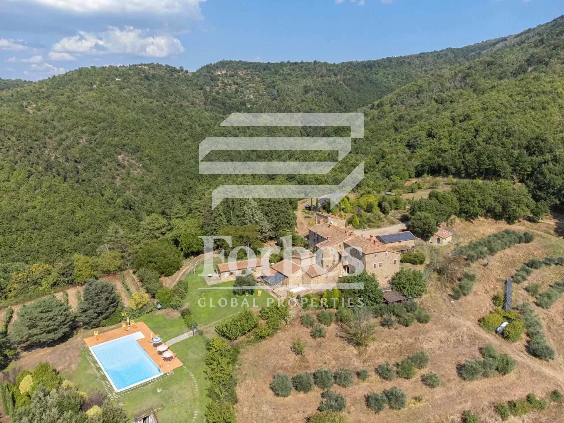 Discover this charming estate, a small hamlet dating back to the 1400s, consisting of 4 buildings and nestled within 23 hectares of lush Tuscan land. Currently used as an agritourism business, the property, certified organic and 95% energy independent, offers an exceptional annual production of olive oil and chestnuts, thanks to its olive groves and chestnut trees.