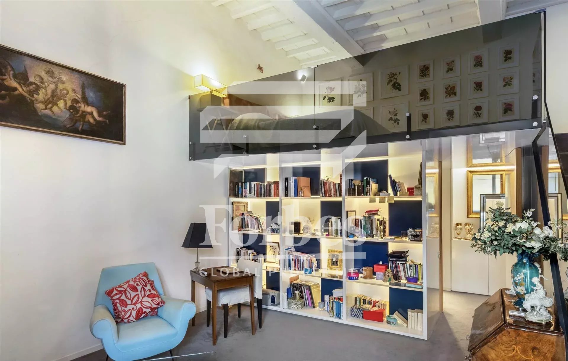 The charming apartment consists of a bright living area, characterized by exposed beams and imposing heights, dining room and eat-in kitchen. Through a corridor equipped with built-in closets, we reach the sleeping area, consisting of two elegant bedrooms with lofts, which make the spaces exploited to the fullest and two bathrooms; the property also has a cellar.
