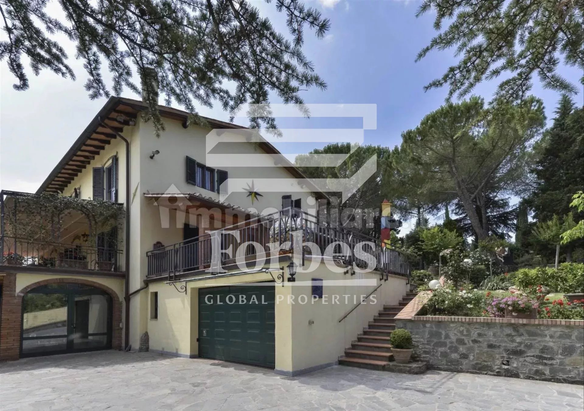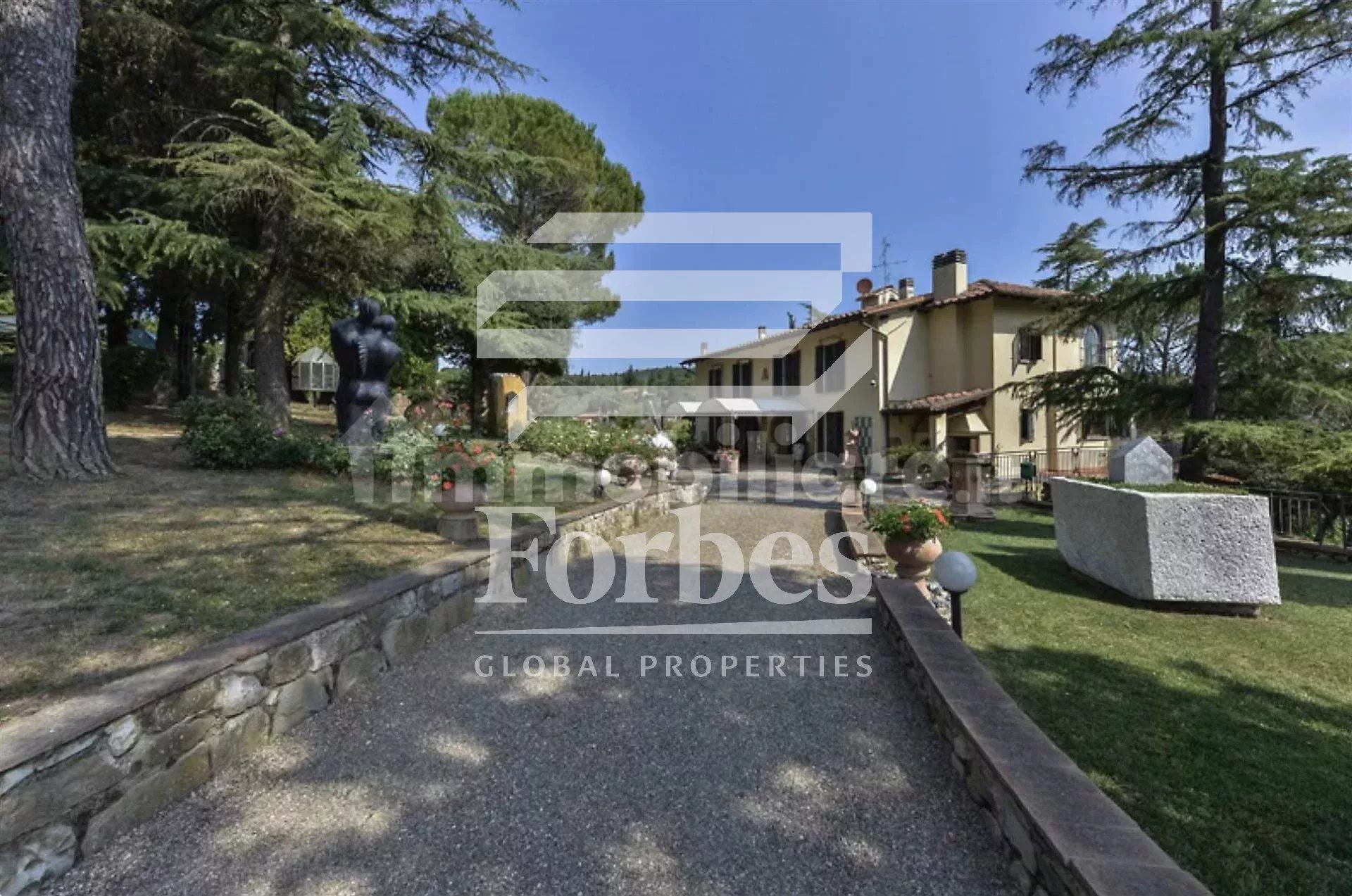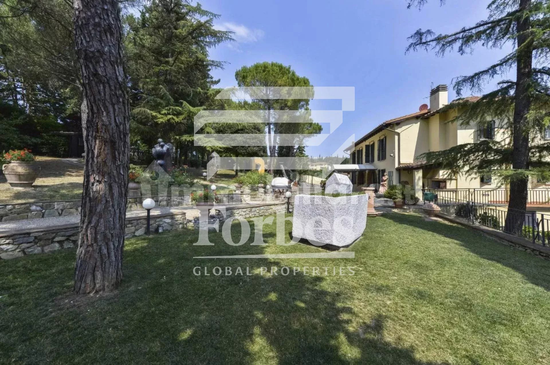 Situata in una bellissima posizione dominante e panoramica sulle prime colline di Firenze ad Impruneta, la villa, in vendita, è stata costruita nei primi anni del ‘900 e completamente ristrutturata alla fine degli anni ’90 con grande attenzione ai dettagli, ed è divisa in due unità. Si accede alla proprietà da un viale privato costeggiato da cipressi fino ad arrivare alla villa che è circondata da un ampio e ben tenuto giardino con una piscina che può essere coperta nel periodo invernale.