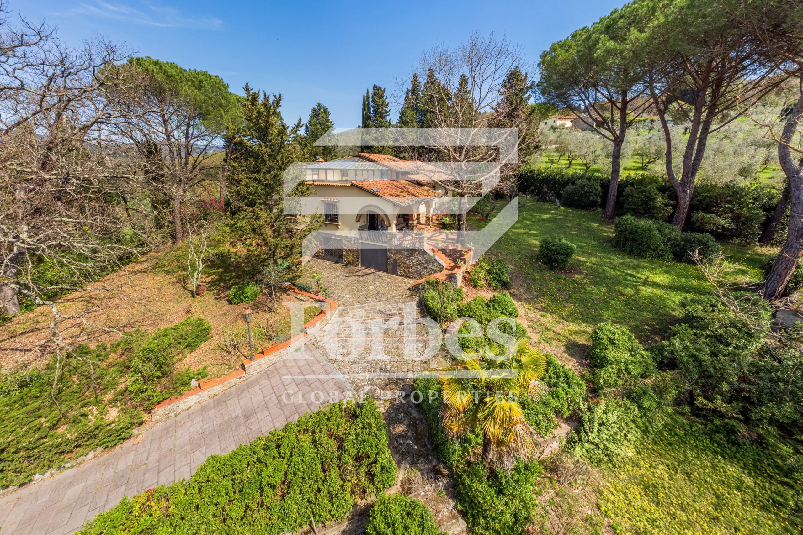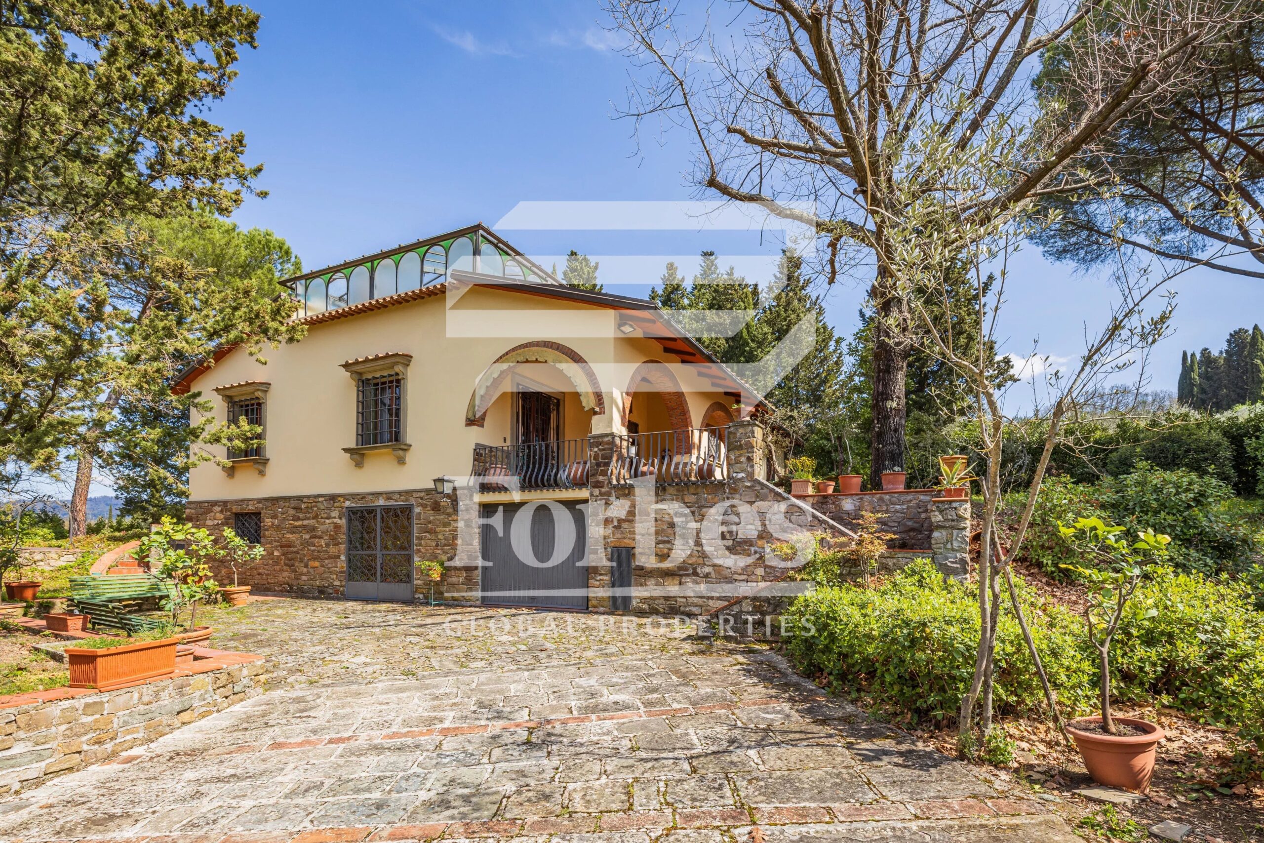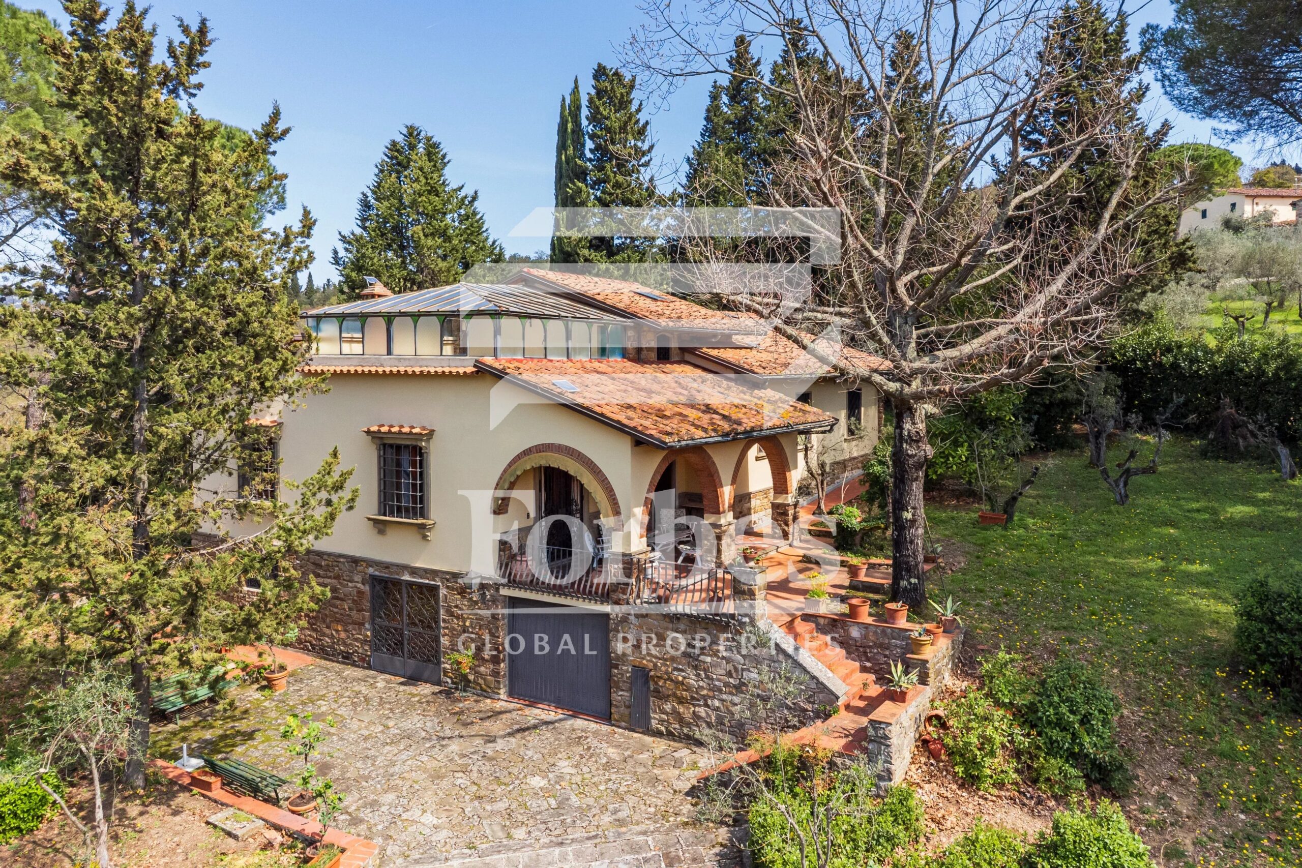 A few minutes from the center of Fiesole and less than half an hour from Florence, in a private and quiet location, lies this elegant detached villa for sale, free on four sides and immersed in the green Tuscan countryside.