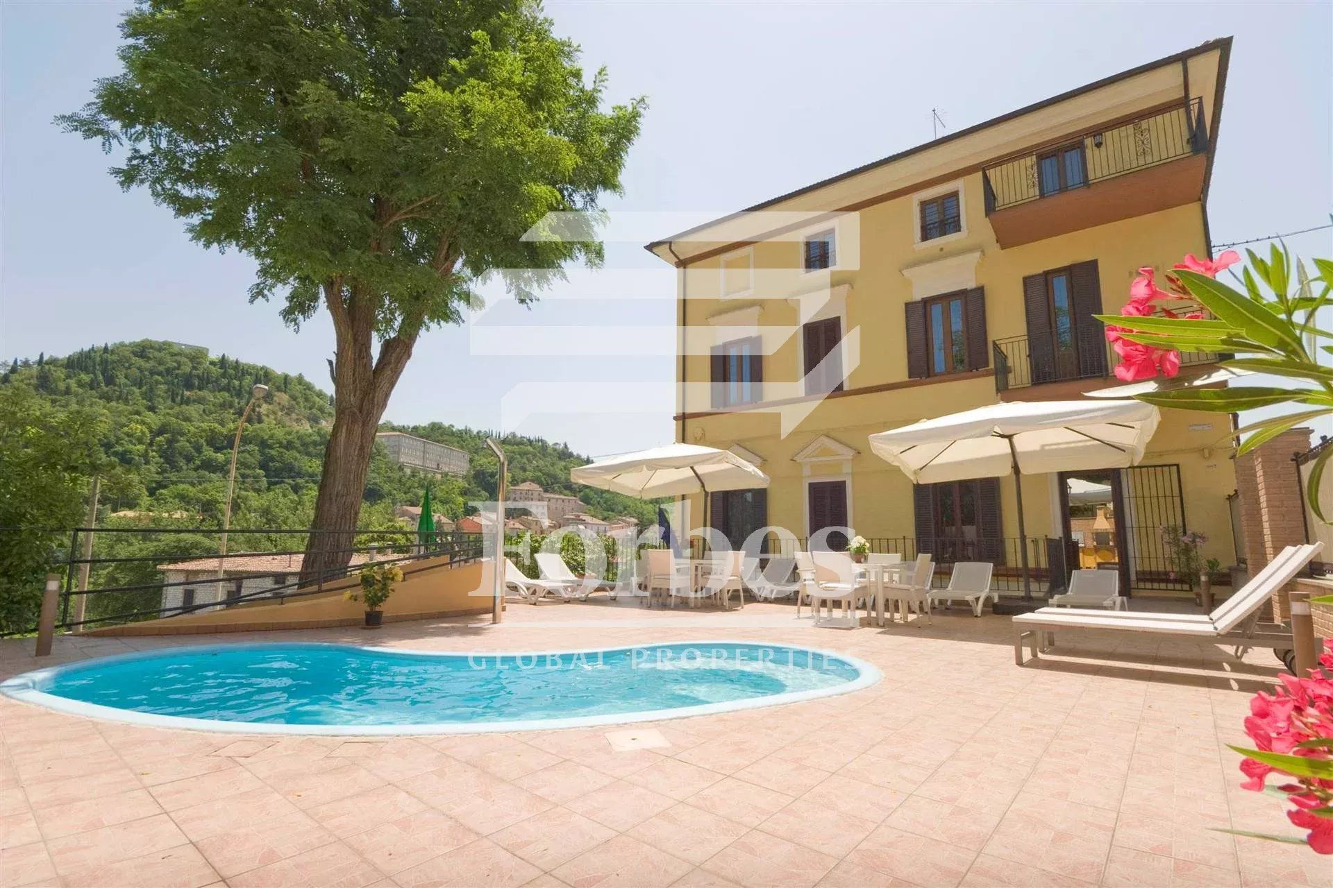 In a privileged position between the Marche and Umbria regions, a short distance from the Frasassi Caves, the Raffaello Residence hotel offers hospitality in 12 elegant suites or 7 apartments. The rooms, furnished in respect and enhancement of the historic building, have all kinds of comforts; the apartments, equipped with all amenities, are furnished with fine antiques. The kitchens, equipped with the highest quality appliances, are spacious and bright. The hotel apartments can accommodate from 4 to 12 people.