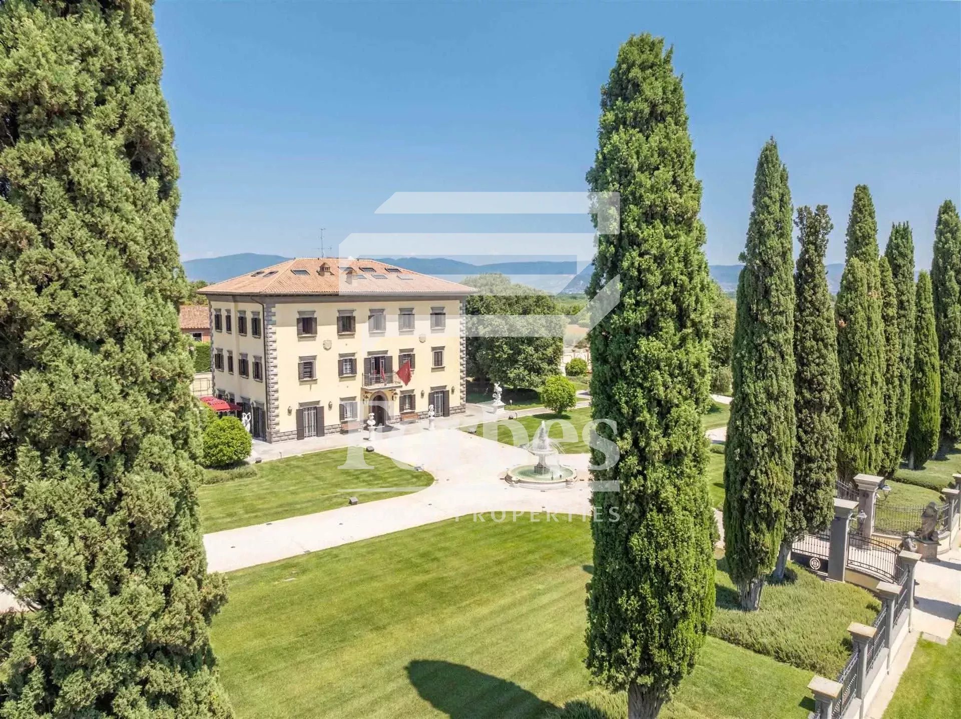 Esta majestuosa propiedad de lujo del siglo XIX, situada entre dos de los pueblos más bellos de la Toscana, Cortona y Montepulciano, con impresionantes vistas de la campiña y de los renombrados viñedos de Vino Nobile di Montepulciano, se encuentra en el evocador contexto de los paisajes de la UNESCO, al tiempo que ofrece confort, privacidad y seguridad.